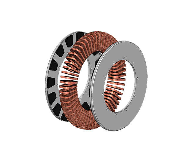 Il motore a flusso assiale è particolarmente adatto ad essere usato in applicazioni “direct drive” migliorando ulteriormente, efficienza, peso ed ingombri dell’applicazione.